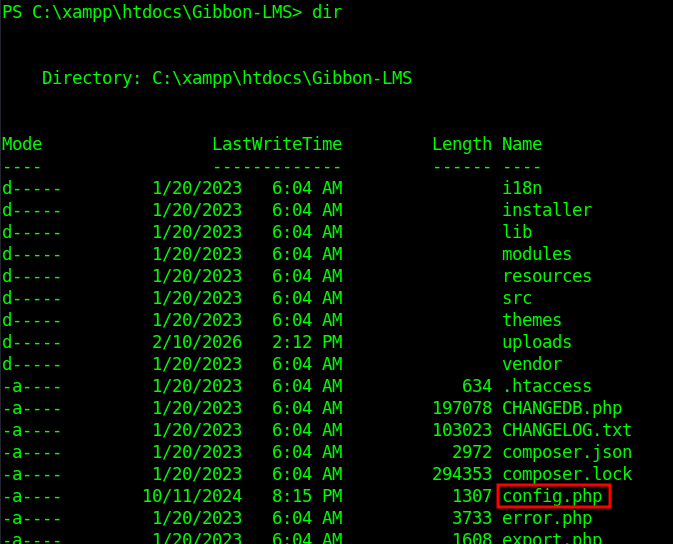 Ran gobuster against the Gibbon-LMS directory to identify hidden endpoints or misconfigurations. No additional interesting directories or files were discovered. Enumeration shifts to application-level vulnerabilities.