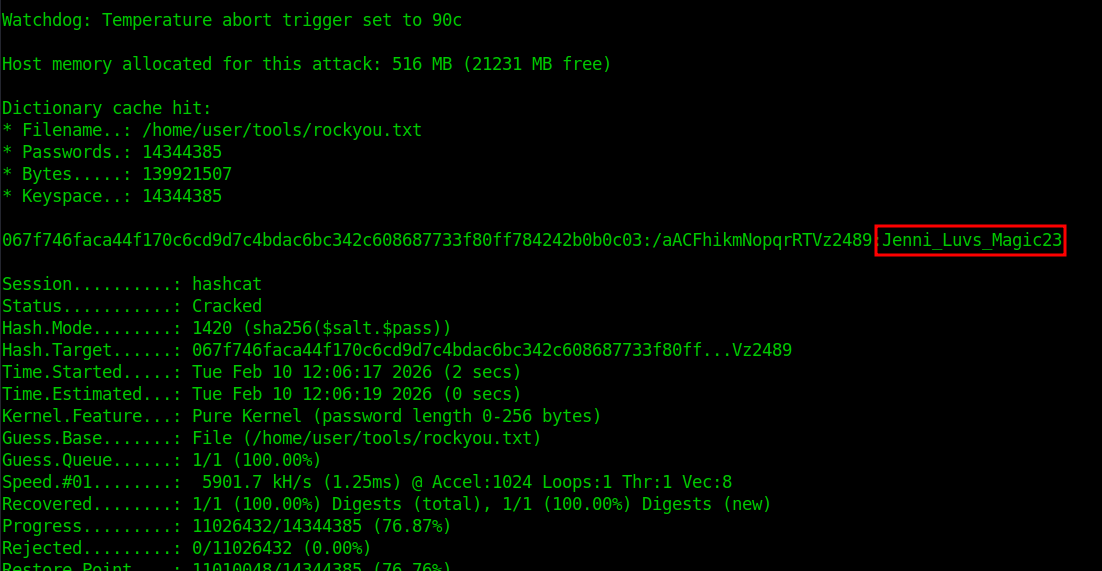 hashcat -m 1420 hash.txt /home/user/tools/rockyou.txt