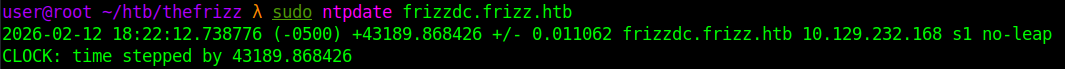 sudo ntpdate frizzdc.frizz.htb