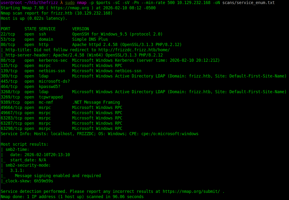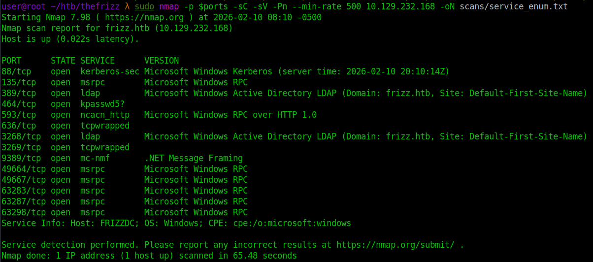 sudo nmap -p $ports -sC -sV -Pn --min-rate 500 10.129.232.168 -oN scans/service_enum.txt