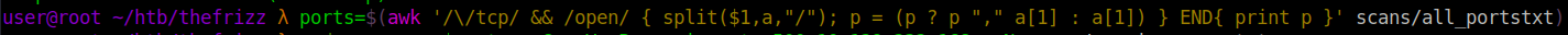 ports=$(awk '/\/tcp/ && /open/ { split($1,a,"/"); p = (p ? p "," a[1] : a[1]) } END{ print p }' scans/all_ports.txt)
